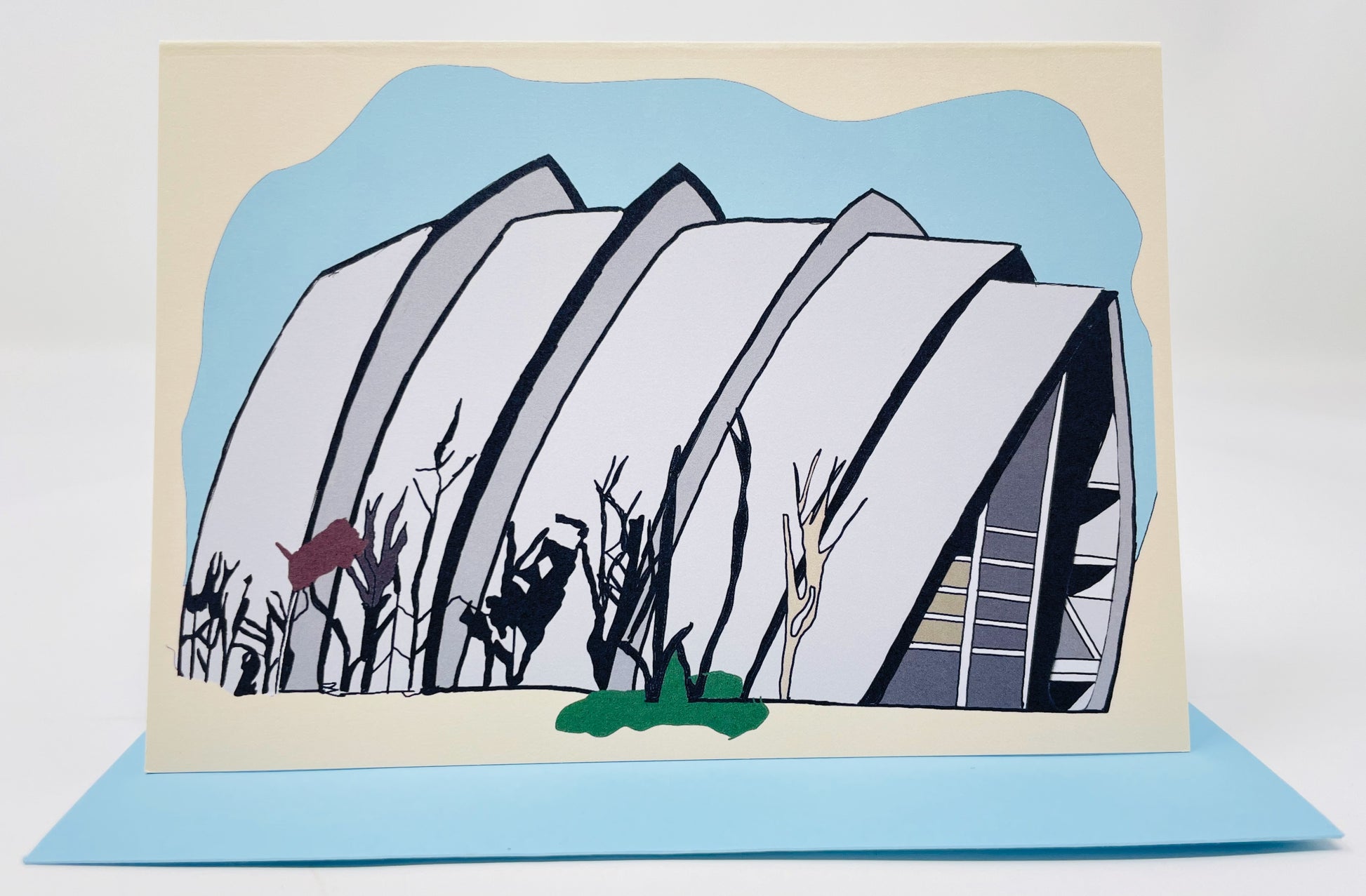 This picture of the iconic Armadillo in Glasgow was created by Crafting Together artist Ben Hamilton. The card is presented with a light blue envelope and is blank inside for your own message. Size: A6